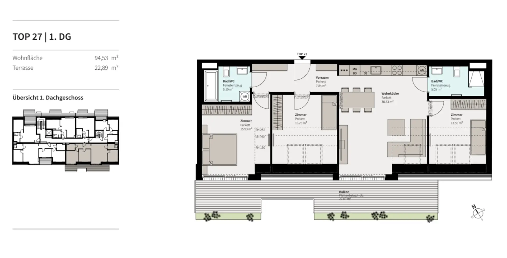 Top 27 – VIER Zimmer Wohnung im 1. Dachgeschoss: