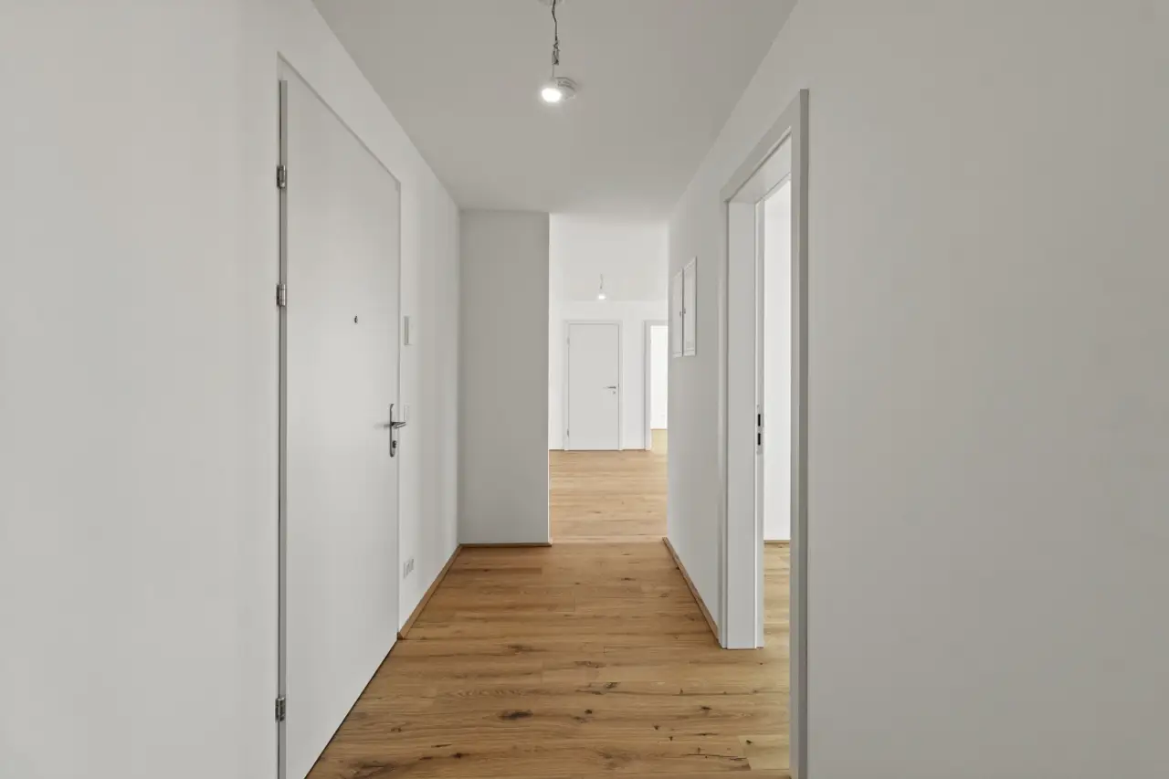 Insgesamt wurden 33 freifinanzierte Eigentumswohnungen sowie eine Gewerbefläche errichtet – ergänzt durch eine hauseigene Tiefgarage mit 18 Stellplätzen, teils vorbereitet für E-Mobilität.
