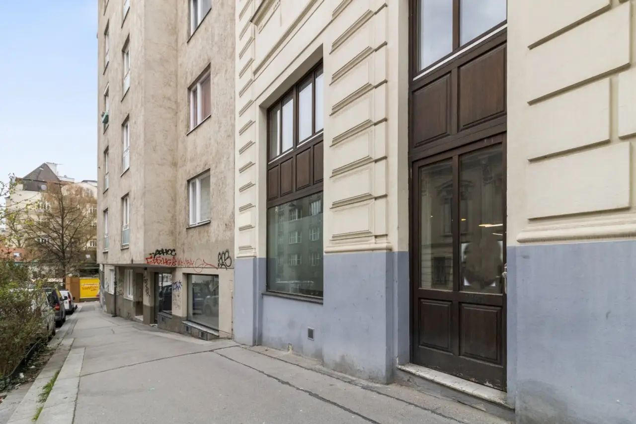 Zur Vermietung gelangt eine vielseitig nutzbare Geschäftsfläche im Erdgeschoss in einem wunderschönen Alt Wiener Zinshaus in sehr beliebter Lage, mit zusätzlicher Fläche über den Treppenaufgang – ideal als Büro mit Küche, Aufenthaltsraum und Toilette.