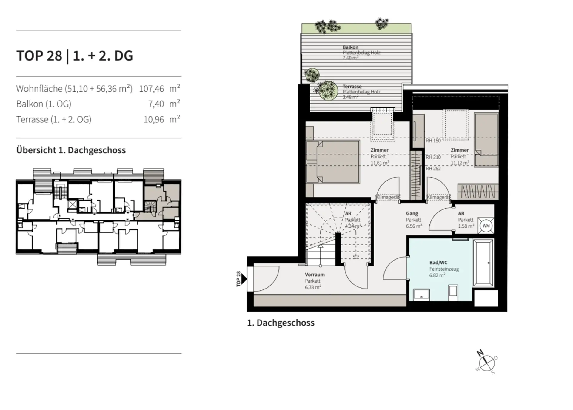 - Klimageräte im Dachgeschoss serienmäßig