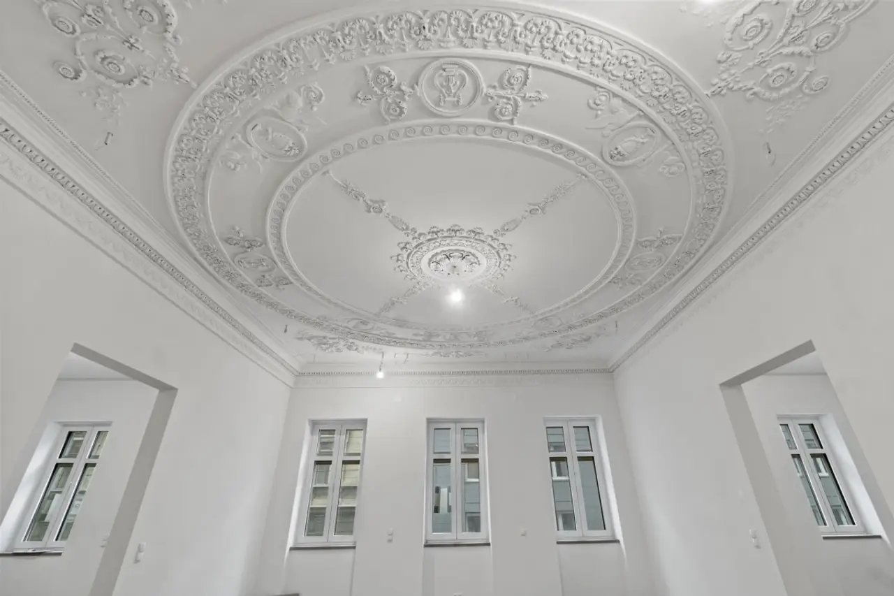 - Stuckdecken, Fischgrätparkett, elegante Fliesen