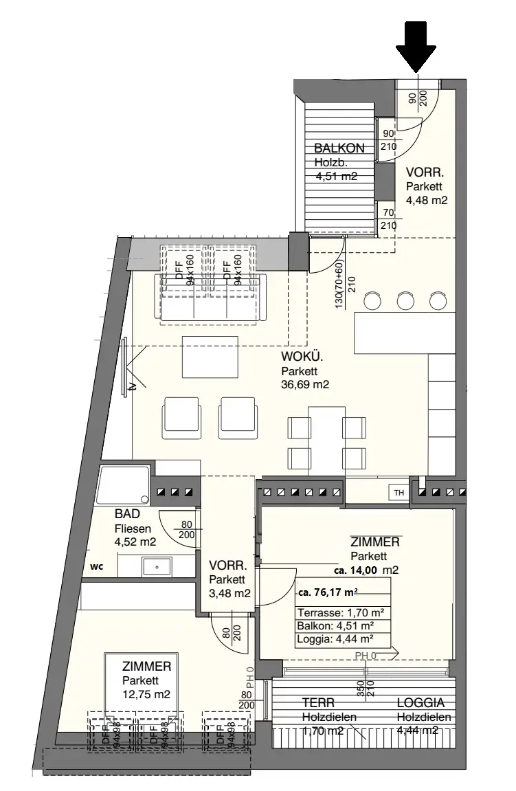 Wohnungsdetails – ca. 76,17 m² Wohnfläche + Terrasse/Loggia ca. 6,16 m² & Balkon ca. 4,51 m²