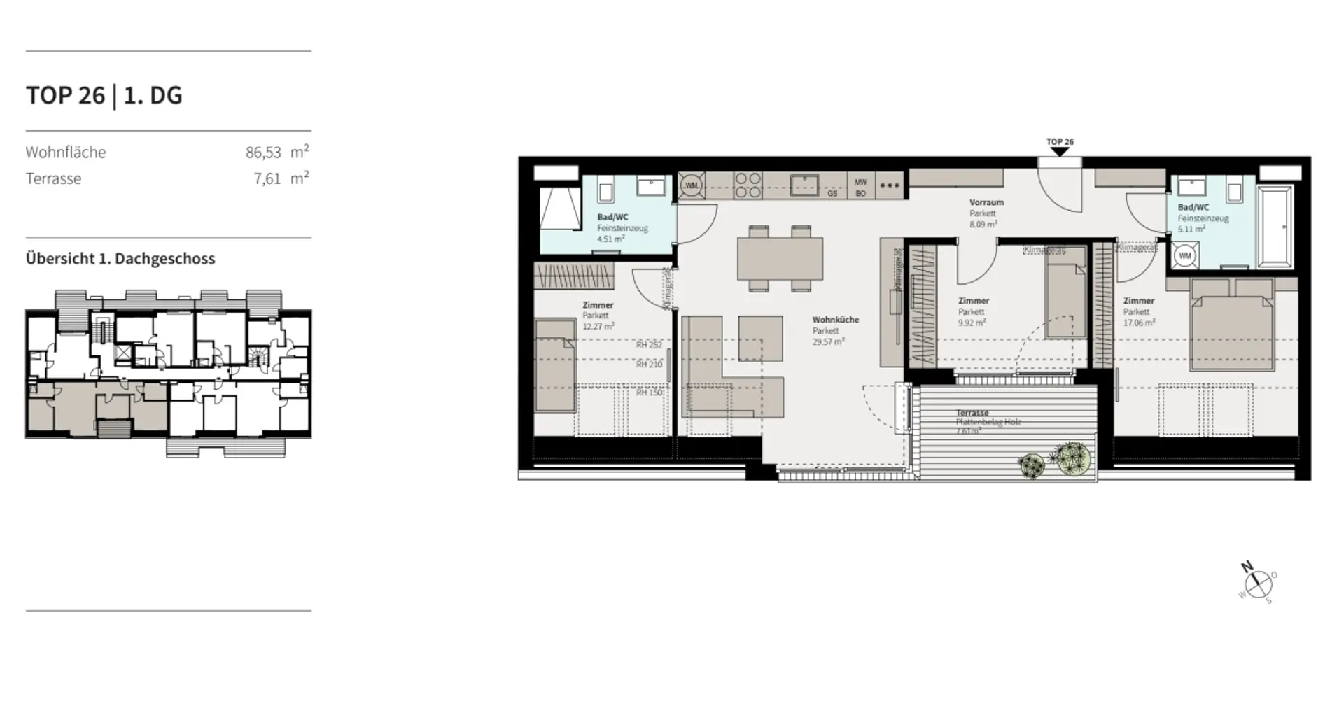 - Klimageräte im Dachgeschoss serienmäßig