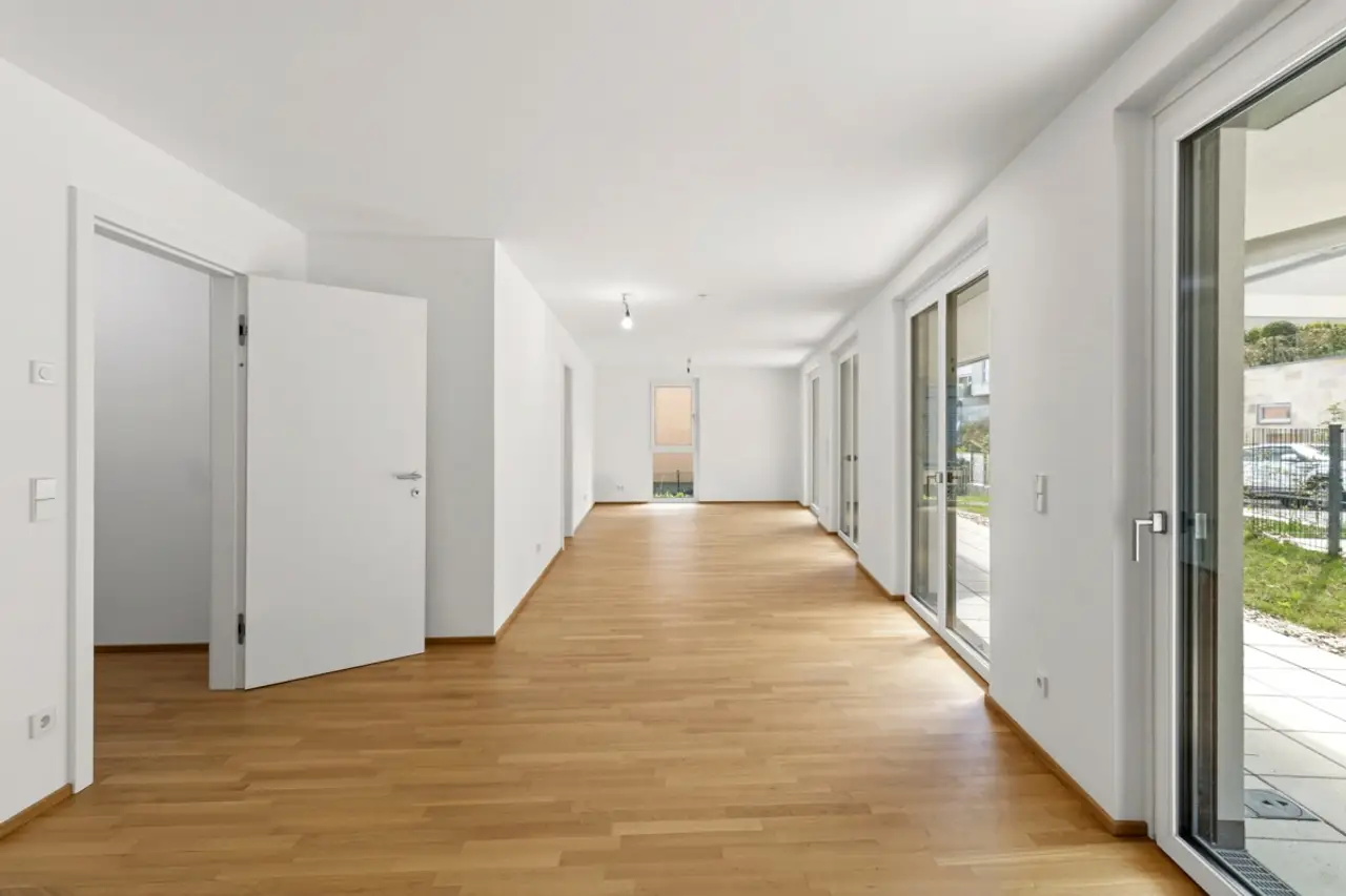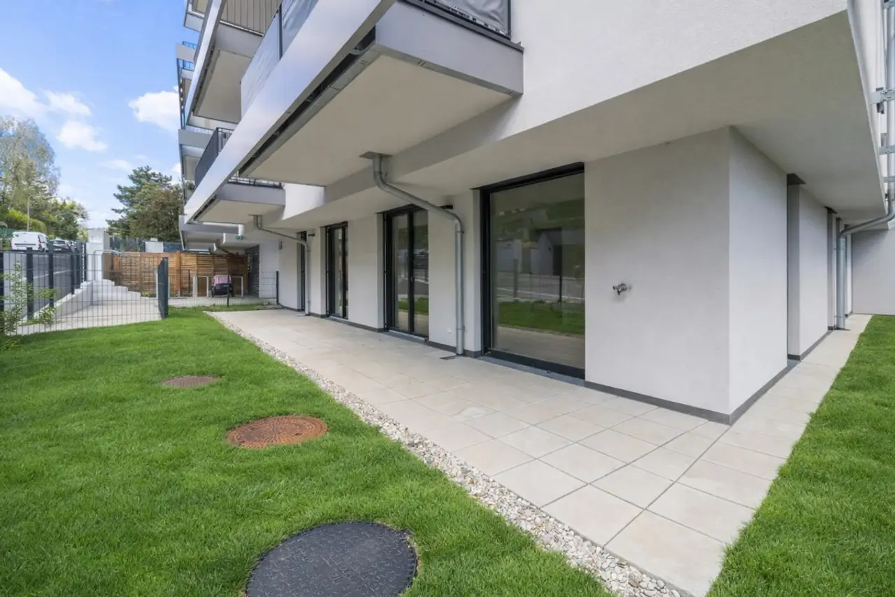 Die moderne Wohnanlage mit einer Tiefgarage wurde erst kürzlich fertiggestellt und überzeugt mit durchdachten Grundrisslösungen, hochwertiger Ausstattungsqualität und Freiflächen in Form von Eigengärten, Balkone oder Terrassen.