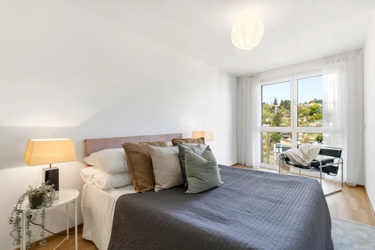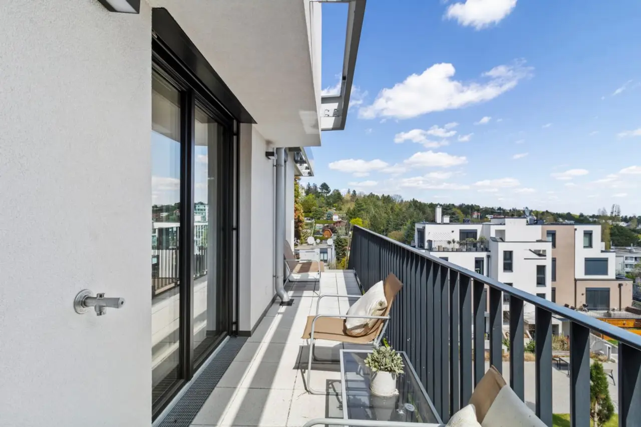 Von Ihrer privaten Terrasse haben Sie die Umgebung stets im Blick und können sicham fantastischen Ausblick auf die Weinlandschaft undWien erfreuen. Wenige Gehminuten entfernt verkehrt die Buslinie 35A, mit dieser erreichen Sie die Schnellbahnstation "Krottenbachstraße" der Linie S45 sowie die U-Bahn-Station "Nußdorferstraße" der Linie U6.