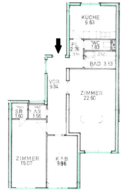 Die Wohnung verfügt über ein großzügiges Vorzimmer, von dem aus sämtliche Räume zentral begehbar sind.