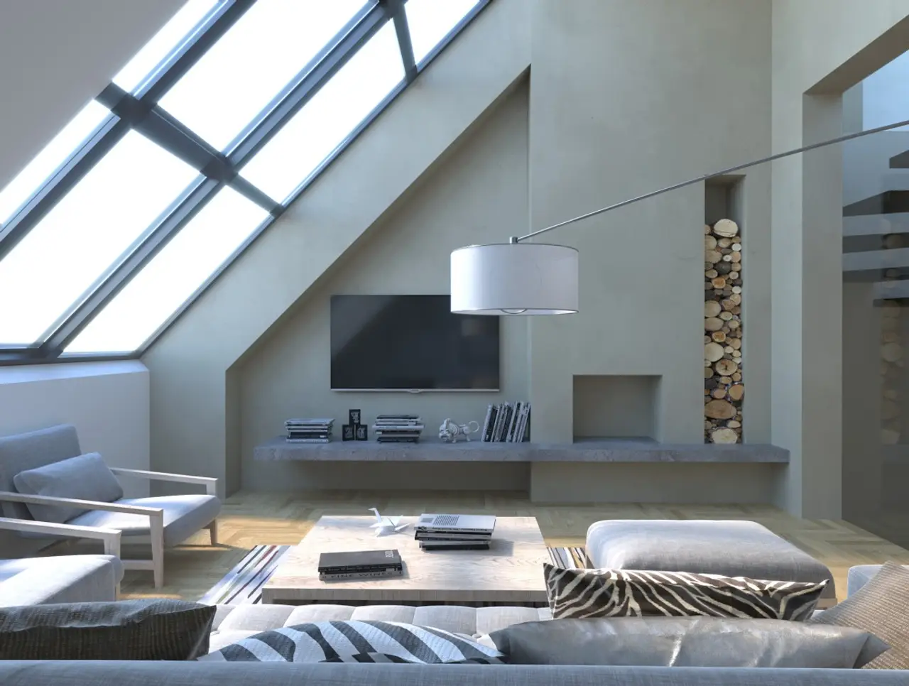 - Wohnküche ca. 74m² mit beeindruckenden, bis zur Decke reichenden Dachflächenfenstern
