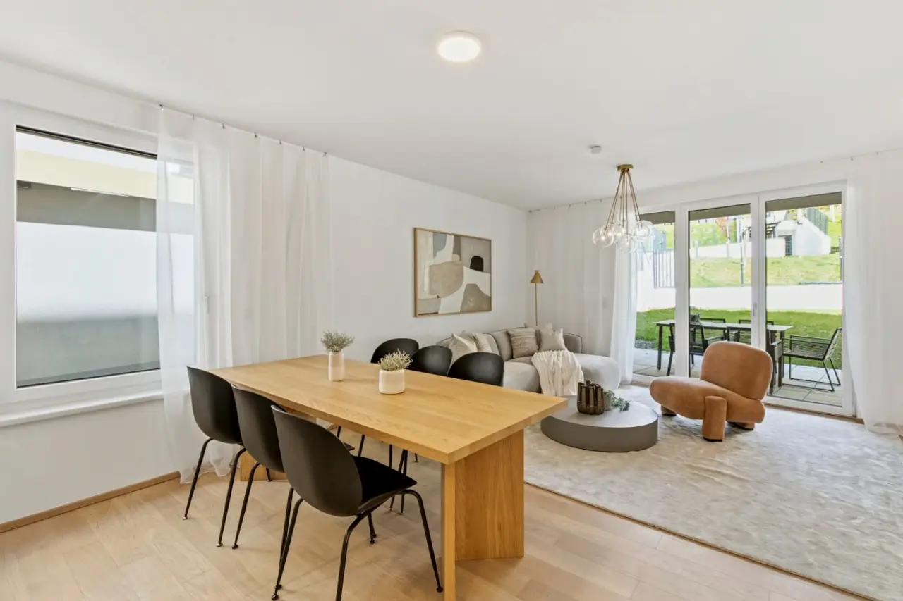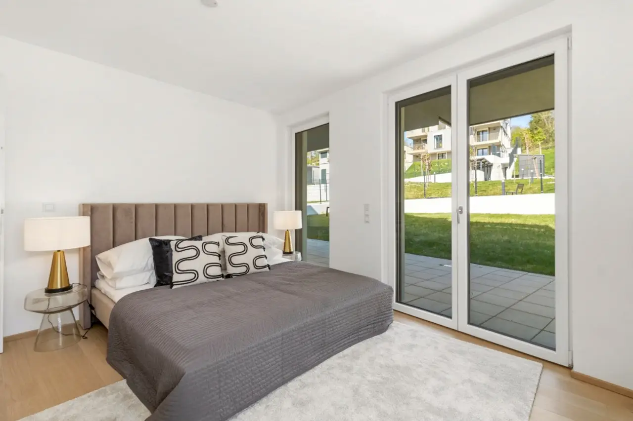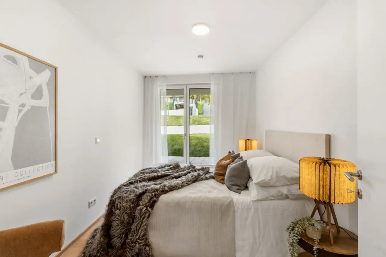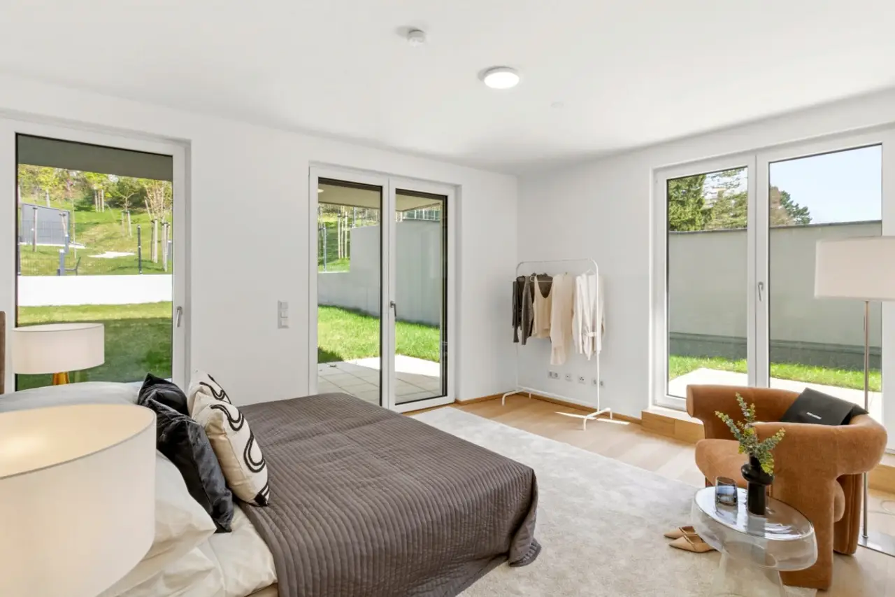 Die moderne Wohnanlage mit einer Tiefgarage wurde erst kürzlich fertiggestellt und überzeugt mit durchdachten Grundrisslösungen, hochwertiger Ausstattungsqualität und Freiflächen in Form von Eigengärten, Balkone, Loggien oder Dachterrassen.