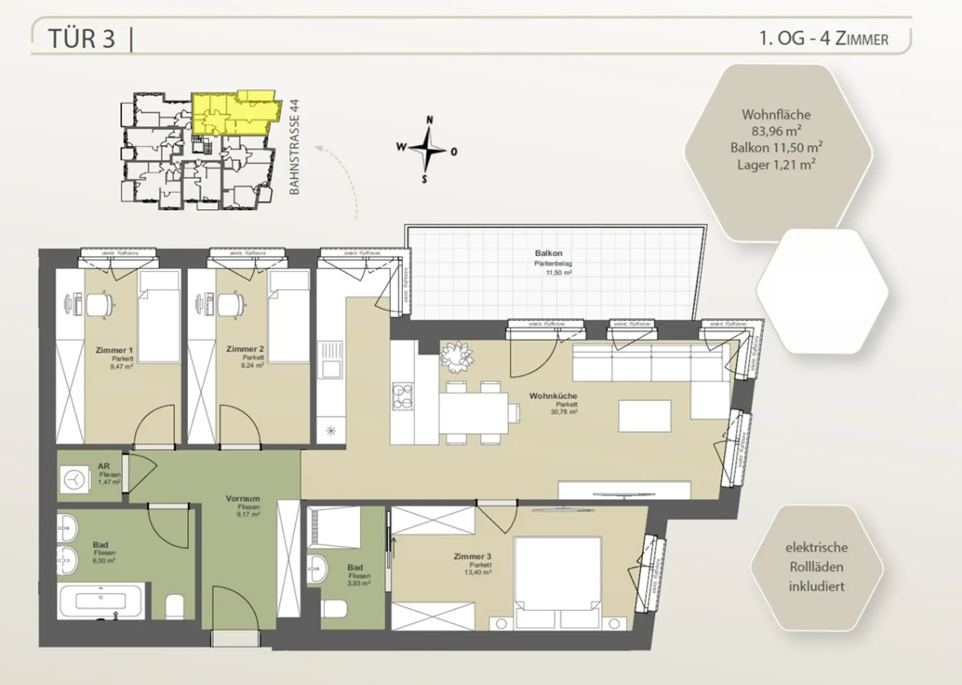 Wohnfläche: ca. 83,96 m² Balkon: ca. 11,50 m²