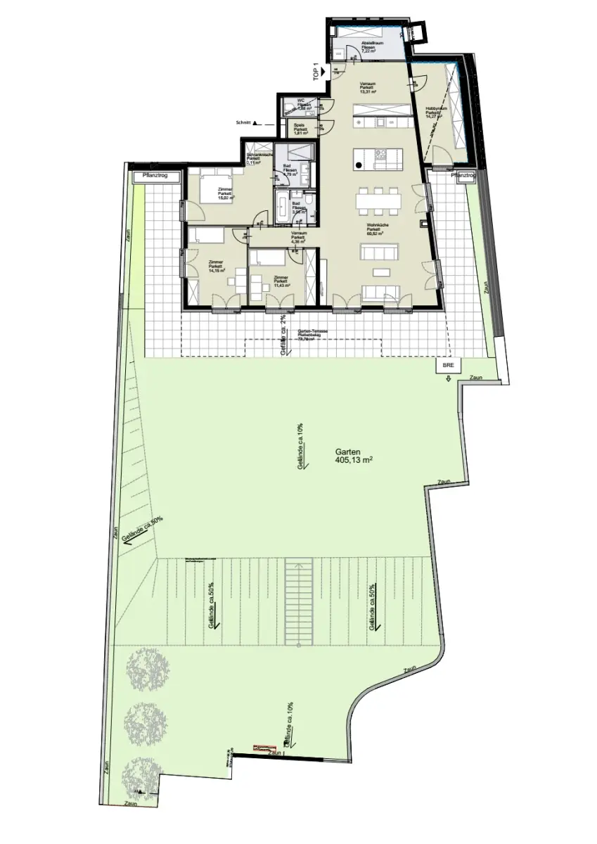 * Terrasse ca. 77,78 m² * Garten unglaubliche ca. 405,13 m²