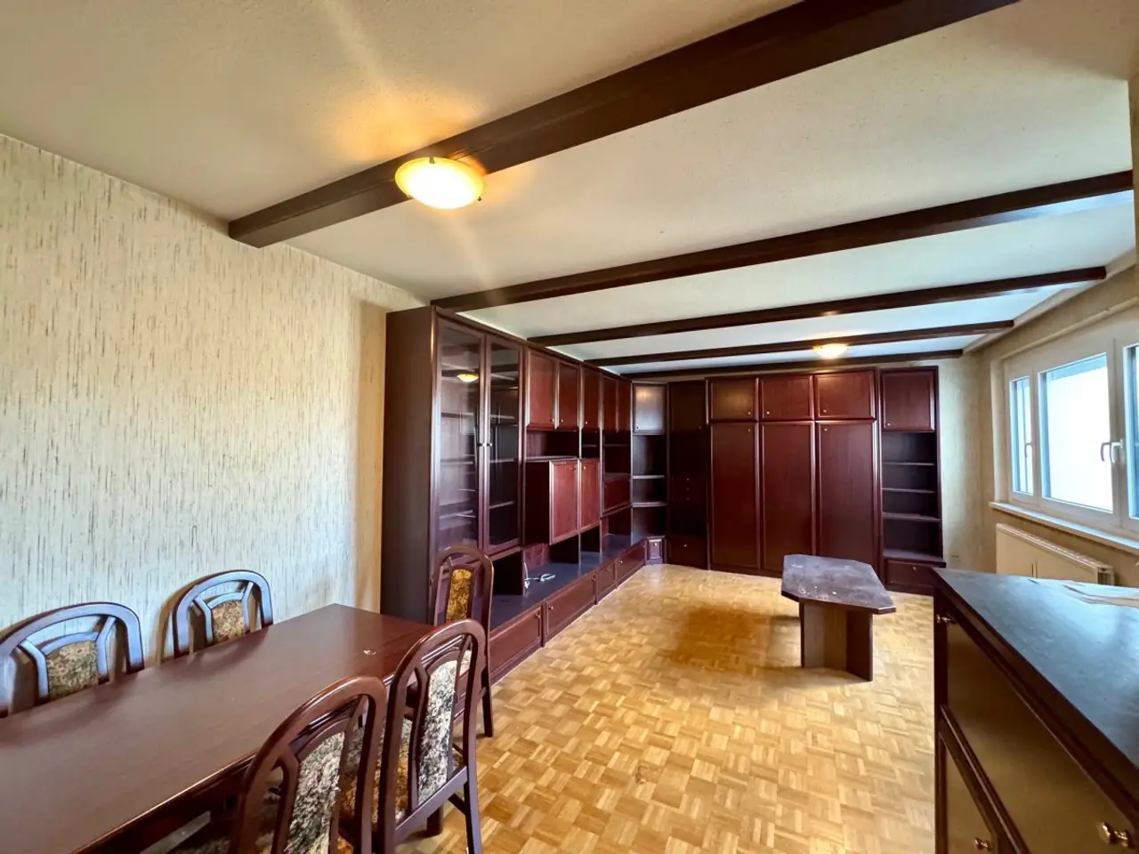 Es sind Renovierungsarbeiten erforderlich, da teilweise Teppichböden und Tapeten vorhanden sind und die Küche bereits in die Jahre gekommen ist.